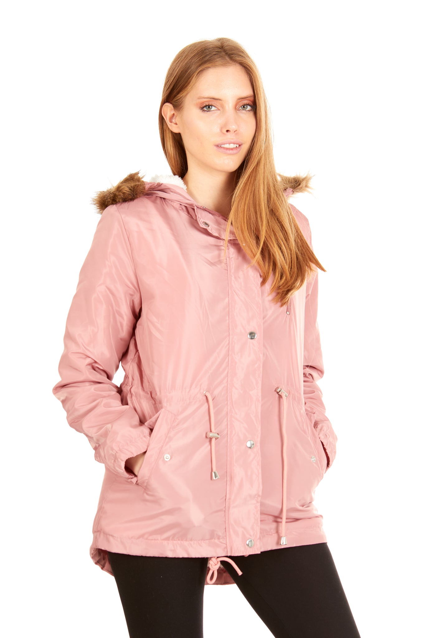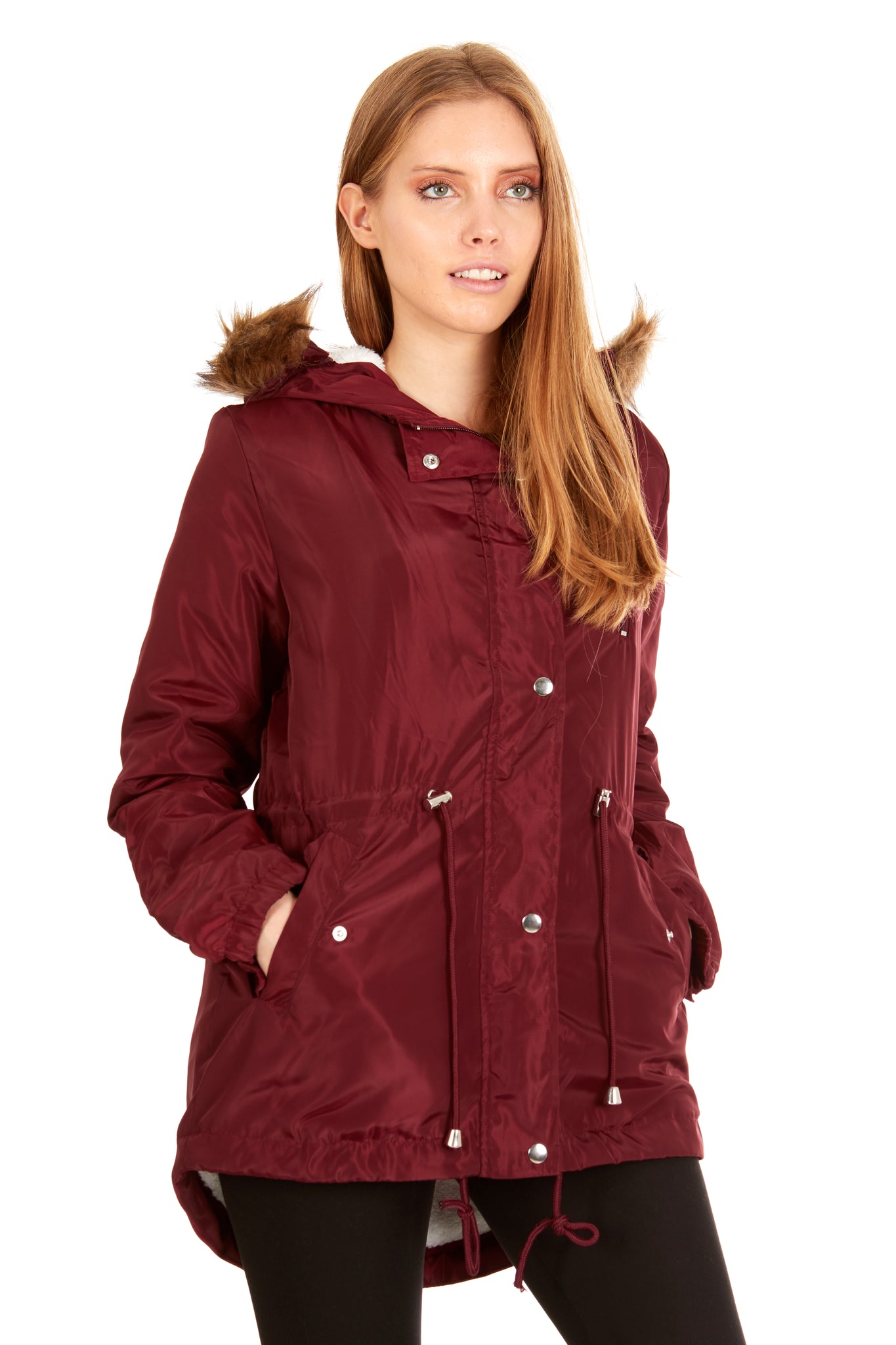 Stay warm and cozy in this Sherpa lined anorak with a faux fur trimmed hood. Perfect for those cold winter days, this zip front jacket features a durable outer layer and a soft, plush interior. The hood is lined with faux fur, adding an extra touch of warmth and style. With its functional design and trendy look, this Sherpa lined anorak is a must-have for any winter wardrobe.